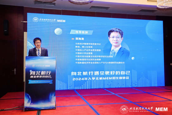 最后,郑海涛书记强调了北航MEM项目的文化内涵。他表示,北航MEM致力于传承和发扬北航的优良校风,培养德才兼备、知行合一的复合应用型工程管理人才。郑海涛书记欢迎有志之士加入北航MEM大家庭,并祝愿各位考生取得佳绩,一步步朝着北航迈进。