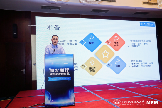 在校友分享环节,两位北航MEM的优秀毕业生代表潘子墨校友和孙德春校友分享了他们的就读感受和备考心得,并给予考生朋友有关备考规划的诸多建议和提醒。