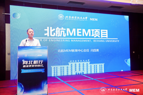 北航MEM教育中心主任闪四清教授围绕北航MEM雄厚的师资力量、特色鲜明的工程管理方向、科学规范的培养体系、精心设计的课程体系以及多样化的学生管理方式五方面详细介绍了北航MEM项目的特色优势。