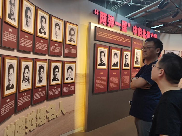 校友们首先来到了北航校史馆。先后参观了以“伟大觉醒、孕育新生”为主题的序厅、以及以“创业兴学、与国同行”、“抢抓机遇、改革奋进”、“好中快进、科学发展”、“立德树人、逐梦一流”为主题的多个展厅。在校史馆讲解员的带领下,一张张泛黄的稿件、一件件斑驳的实物、一段段感人至深的故事,彰显了一代代北航人勇往直前、拼搏进取的精神,与校友们航空救国、空天报国的北航基因一脉相承。(见图2、图3)