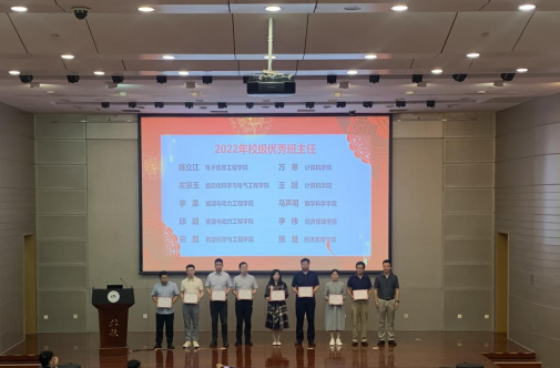 6月25日,教务部、教师发展中心联合举办了2022年优秀班主任表彰大会暨2023年班主任通用能力培训会,100余名本科班主任通过线下、线上结合的方式参加培训。经管学院李伟、张楚两位老师荣获校级优秀班主任奖。教务部部长钱政和学生工作部部长宋晓东为获奖班主任颁发荣誉证书。