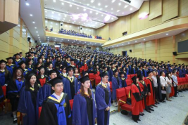 学位授予仪式结束后,全体毕业生与学院领导、教师们在新主楼前集体合影留念。