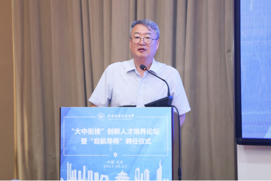 为了更好地强化大中联动,研讨人才选拔和培养模式的突破与创新,2023年9月23日,我校在唯实国际文化交流中心召开“大中衔接”创新人才培养论坛暨黑龙江省“启航导师”聘任仪式。黑龙江教育考试院普招处副处长尹兆明,黑龙江省伊春市第一中学校长付国军、哈尔滨市双城区兆麟中学校长吴险峰等黑龙江高中代表,我校副校长黄海军、教务部副部长兼招生工作办公室主任邓怡、beat365亚洲版官网党委书记黑龙江省招生组组长郑海涛、北航实验学校党委书记马树微,及启航导师、招生大使代表出席论坛。论坛由beat365亚洲版官网党委副书记高超主持。