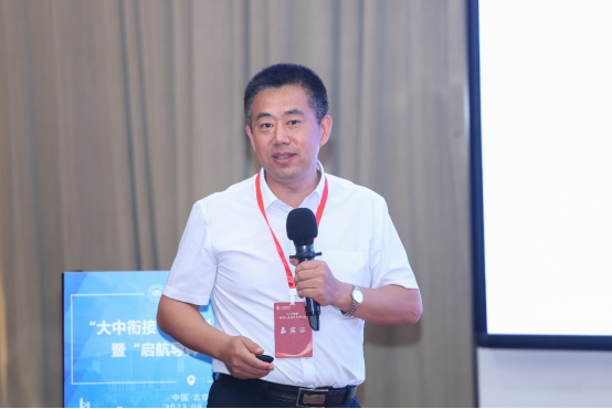 我校副校长黄海军致辞讲话,他向参会嘉宾介绍了北航历史沿革、学科建设、人才培养等基本情况,针对“大中衔接”工作,黄海军副校长高度重视,学校大力鼓励和支持品牌教授采取前置课等多种形式,通过科学方法论的提前介入和价值观的导向来提高学生的综合素养、缩短迷茫期,同时欢迎各中学师生来访北航、给北航“提菜单”,由北航“设计路线”,深入探索建立轻装备联合实验室等途径以加强人才培养的衔接。