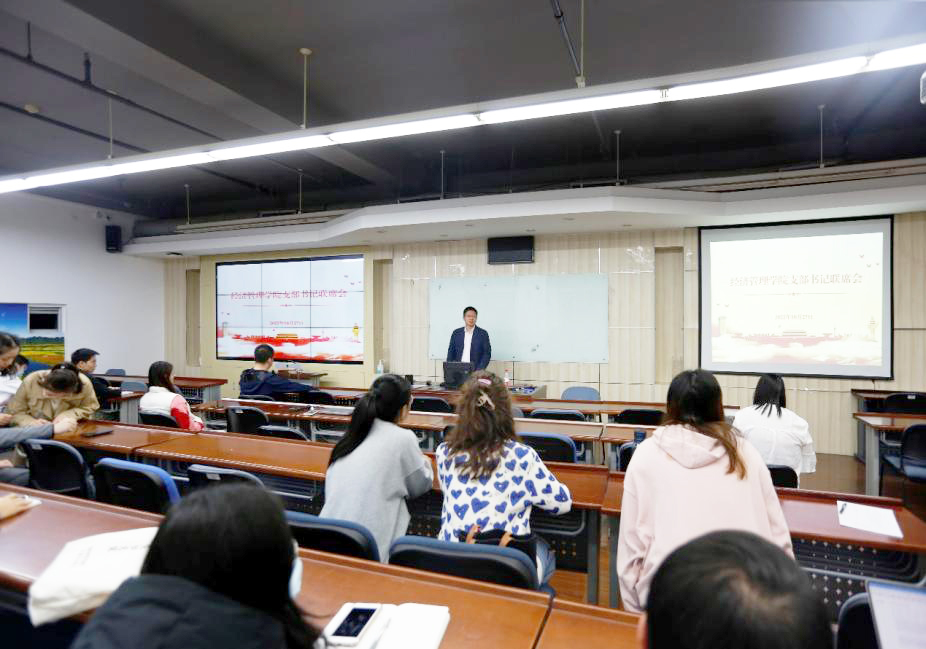 2022年10月27日中午,beat365亚洲版官网在新主楼A622教室召开师生党支部书记联席会,传达学习习近平总书记在中国共产党第二十次全国代表大会上的报告,并部署近期重点工作。学院党委书记郑海涛主持会议,学院党委副书记高超、专职组织员、师生党支部书记等40人参加会议。