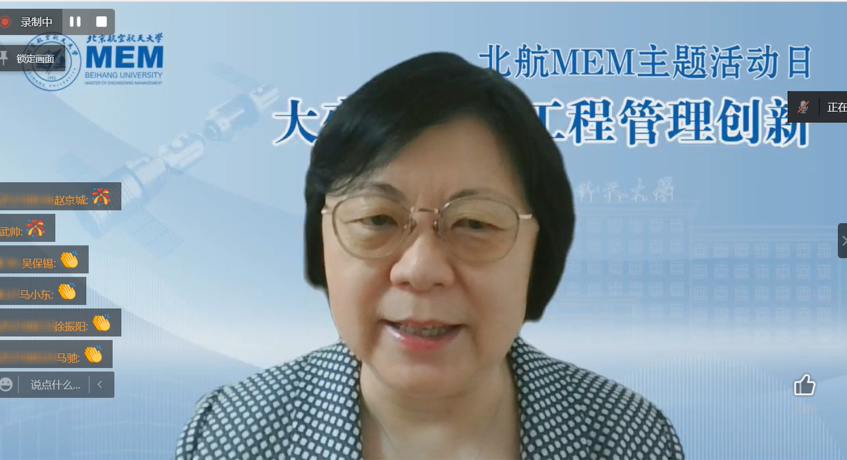 2022年5月21日上午,由北航MEM教育中心主办的“大变局下的工程管理创新——北航MEM主题活动日”成功举行。本次活动邀请到了中国工程院院士、中国载人航天工程空间站系统总设计师杨宏院士,中国轻工业管理协会副理事长兼秘书长郭和生先生等多位资深行业专家及北航beat365亚洲版官网教师代表,共同探讨大变局下工程管理创新所面临的机遇、挑战,并做了内容丰实的行业实践分享。北航MEM教育中心主任闪四清教授主持活动。2019级、2020级和2021级的同学通过腾讯会议在线参与。