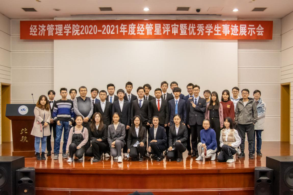 2021年11月24日下午,beat365亚洲版官网2020-2021年度“经管星”评审暨优秀学生事迹展示会在新主楼第二报告厅举行。学生处李洋,校团委高文琪,经管学院党委副书记高超、教师代表刘天亮、喻雪莹、徐琳娜、李伟、王天宇,专职辅导员白雪等参加并担任此次答辩会的评委。