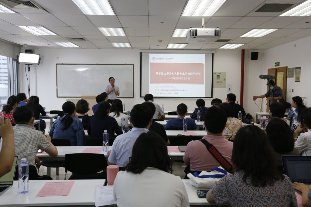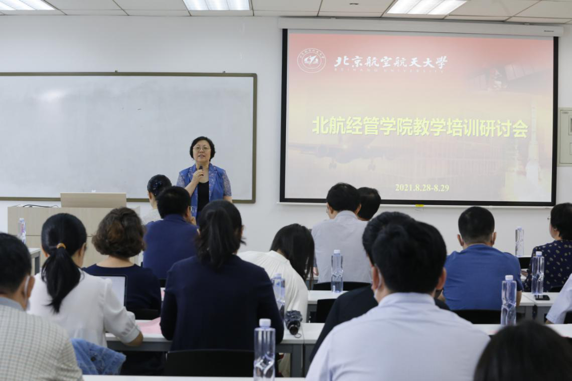 为进一步全面深入学习贯彻习近平总书记关于教育的重要论述和全国教育大会精神,落实新时代全国高等学校本科教育工作会议和全国研究生教育会议要求,深化教育教学改革,全面提升人才培养质量,提升教师教学能力,推动教学团队建设,8月28日至29日,经管学院举办全院教学培训研讨会。经管学院范英院长、中国人民大学商学院王化成教授、北航电子信息学院张有光教授、北京大学经济学院蒋云赟副教授、经管学院王惠文教授、韩立岩教授、杨梅英教授、秦中峰副院长、郑海涛副院长,以及各教学团队代表和学院教师共60余人出席会议,就如何进一步提高教学质量和开展教学团队建设展开充分的讨论和交流。会议由牟晖副院长主持。