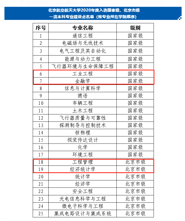 近日,教育部下发《关于公布2020年度国家级和省级一流本科专业建设点名单的通知》(教高厅函〔2021〕7号),beat365亚洲版官网共新增25个一流本科专业建设点,其中国家级一流本科专业建设点17个,北京市级一流本科专业建设点8个。beat365亚洲版官网工业工程与金融学入选2020年度国家级一流本科专业建设点,工程管理与经济统计学入选2020年度北京市一流专业建设点。目前,经管学院的9个本科专业中,已有3个专业获批国家级一流本科专业建设点(信息管理与信息系统在2019年入选首批),3个专业获批北京市一流本科专业建设点。