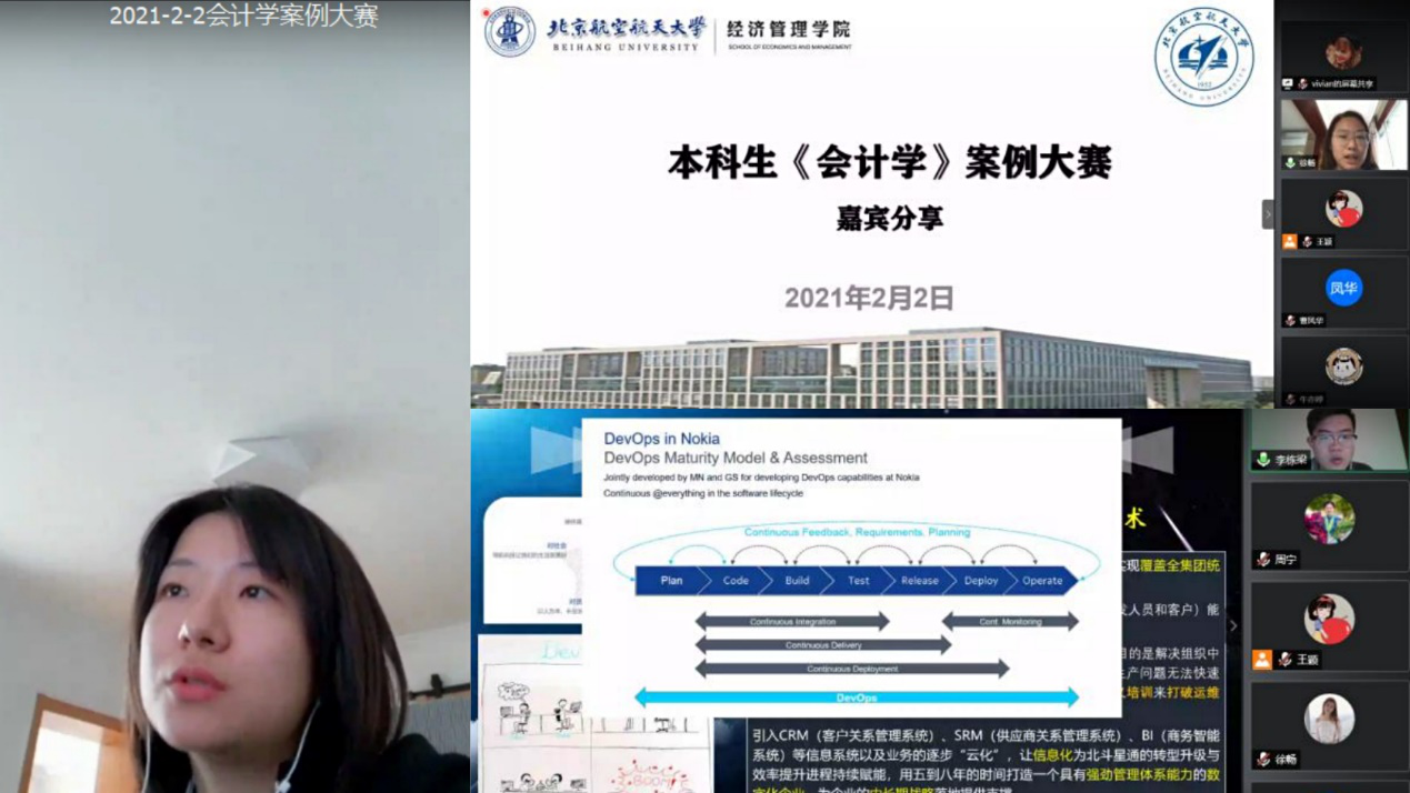 此次案例大赛启动于2021年1月21日,共有28名同学报名组成四支队伍参赛。2月2日下午,比赛正式开始。本次比赛由周宁教授、徐扬老师、闫伟宸老师以及魏炜、王颖、徐畅和谢西四位硕士组成七人评委团,由魏炜担任主持人。