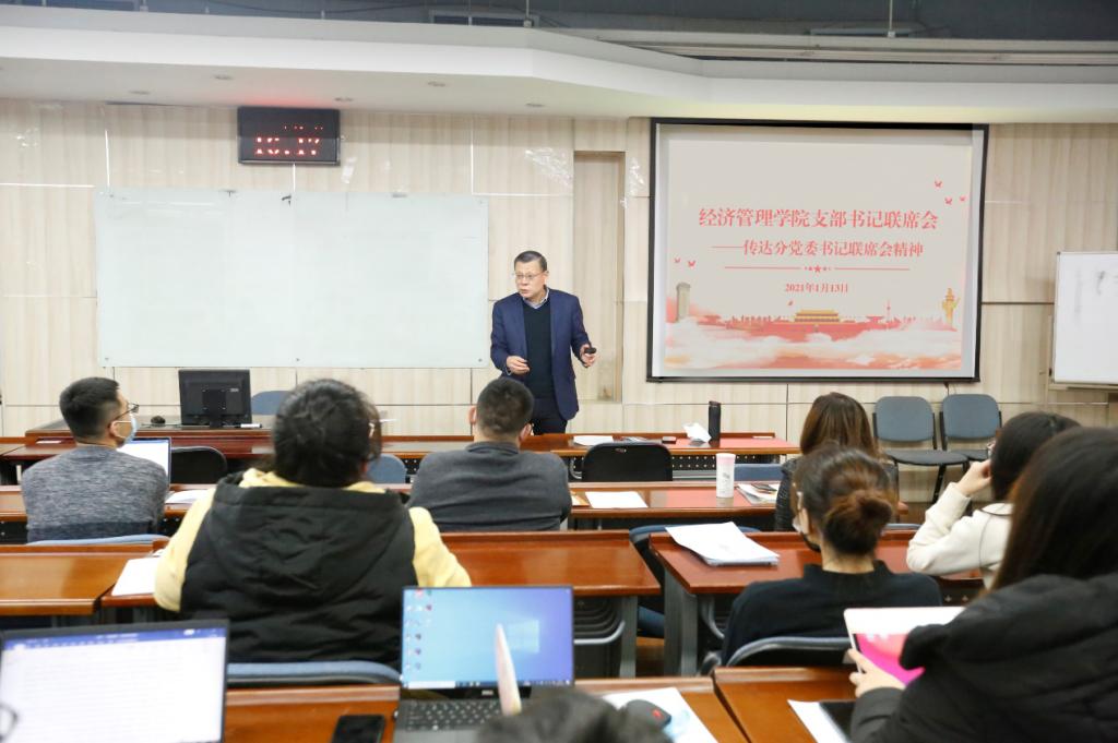 2021年1月13日下午16时,beat365亚洲版官网在新主楼A622召开支部书记联席会,传达学校分党委书记联席会精神,学院分党委书记刘志新主持会议,全体师生党支部书记、学生工作负责人和专职组织员40余人参加会议。