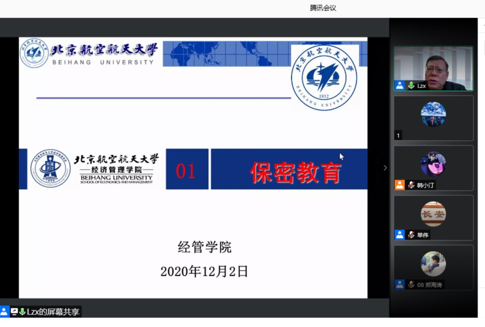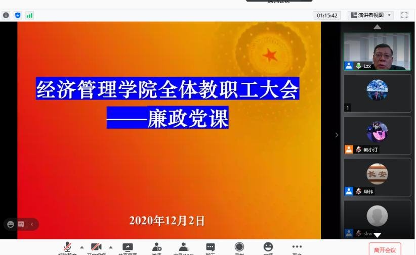 2020年12月2日下午,经管学院召开线上全院教工大会,部署近期学院主要工作,开展安全、保密教育和廉政党课。会议由分党委书记刘志新主持,120余位教职工参加了线上会议。