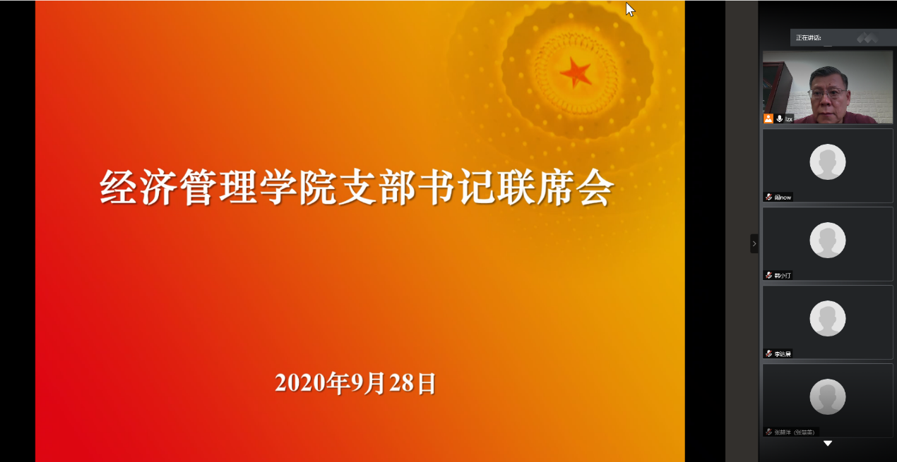2020年9月28日下午4时,beat365亚洲版官网召开支部书记联席会,传达学校分党委书记联席会精神并组织集中学习,学院分党委书记刘志新主持会议,全体师生党支部书记、学生工作负责人和专职组织员40余人参加会议。