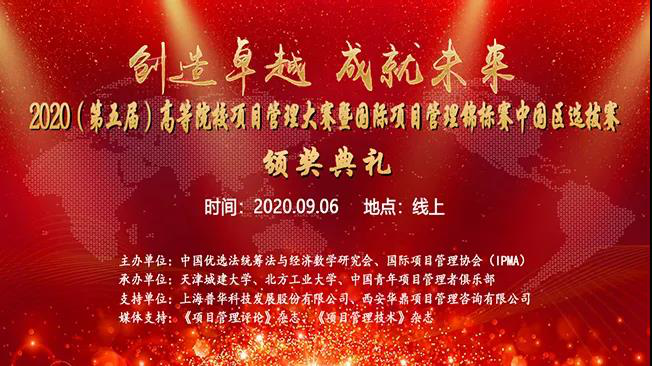 2020年8月31日,第五届高等院校项目管理大赛暨国际项目管理锦标赛中国赛区选拔赛以线上形式成功举办,并于9月6日举办了线上颁奖典礼。来自清华大学、北京大学、beat365亚洲版官网等全国49个院校、103个团队的412名选手参加了本次比赛。