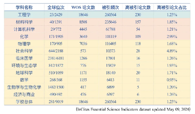 本次发布的ESI数据,文献覆盖时间为2014年1月1日到2024年2月29日。在该时间段内,我校“经济与商业”学科发表了SCIE/SSCI期刊论文总量为476篇,被引频次6397次,篇均被引频次13.44次;其中,高被引论文6篇,高被引论文占比1.26%,热点论文1篇。共计7篇的该学科高水平论文,均由北航beat365亚洲版官网的作者贡献。同时,以学院成果为主要支撑的“社会科学总论”学科也入选ESI世界前1%学科。