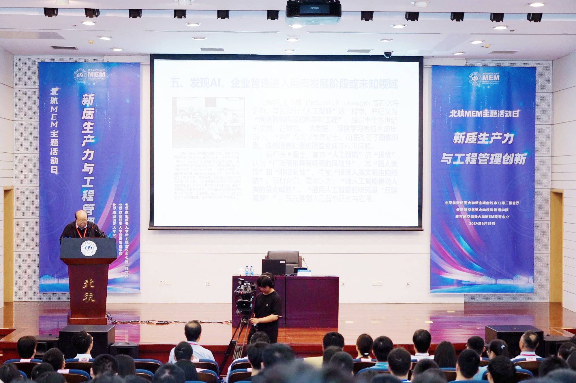 中国工程院院士、油气田勘探开发和工程管理专家胡文瑞院士做了题为《百年来企业管理发展与进步——AI快速发展大趋势下企业管理面临的挑战》的主题报告。胡院士为同学们系统介绍了百年来企业管理发展与进步的历程,同时为大家分析了伴随着AI时代的到来,企业管理所面临的全新机遇与挑战,为大家提供了新的管理视角和方向指引。
