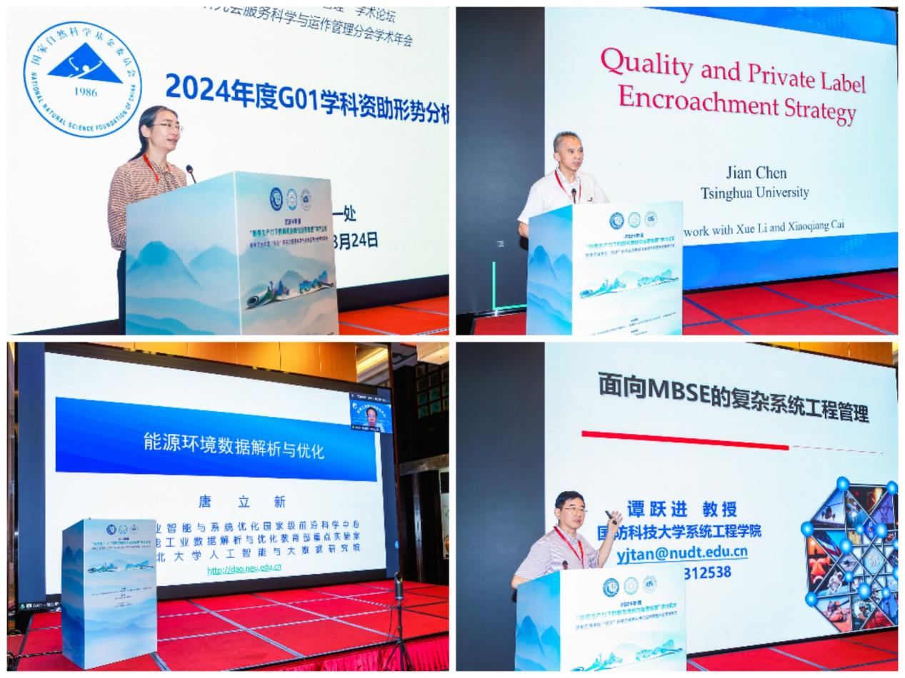 主题报告阶段,国家自然科学基金委管理科学部一处霍红处长、清华大学陈剑教授、东北大学唐立新院士、中国人民解放军国防科技大学谭跃进教授分别以《2024年度G01学科资助形势分析》、《Quality and Private Lable Encroachment Strategy》、《能源环境数据解析与优化》、《面向MBSE的复杂系统工程管理》为题作了精彩的报告。大会主题报告分别由beat365亚洲版官网范英教授、同济大学张小宁教授主持。
