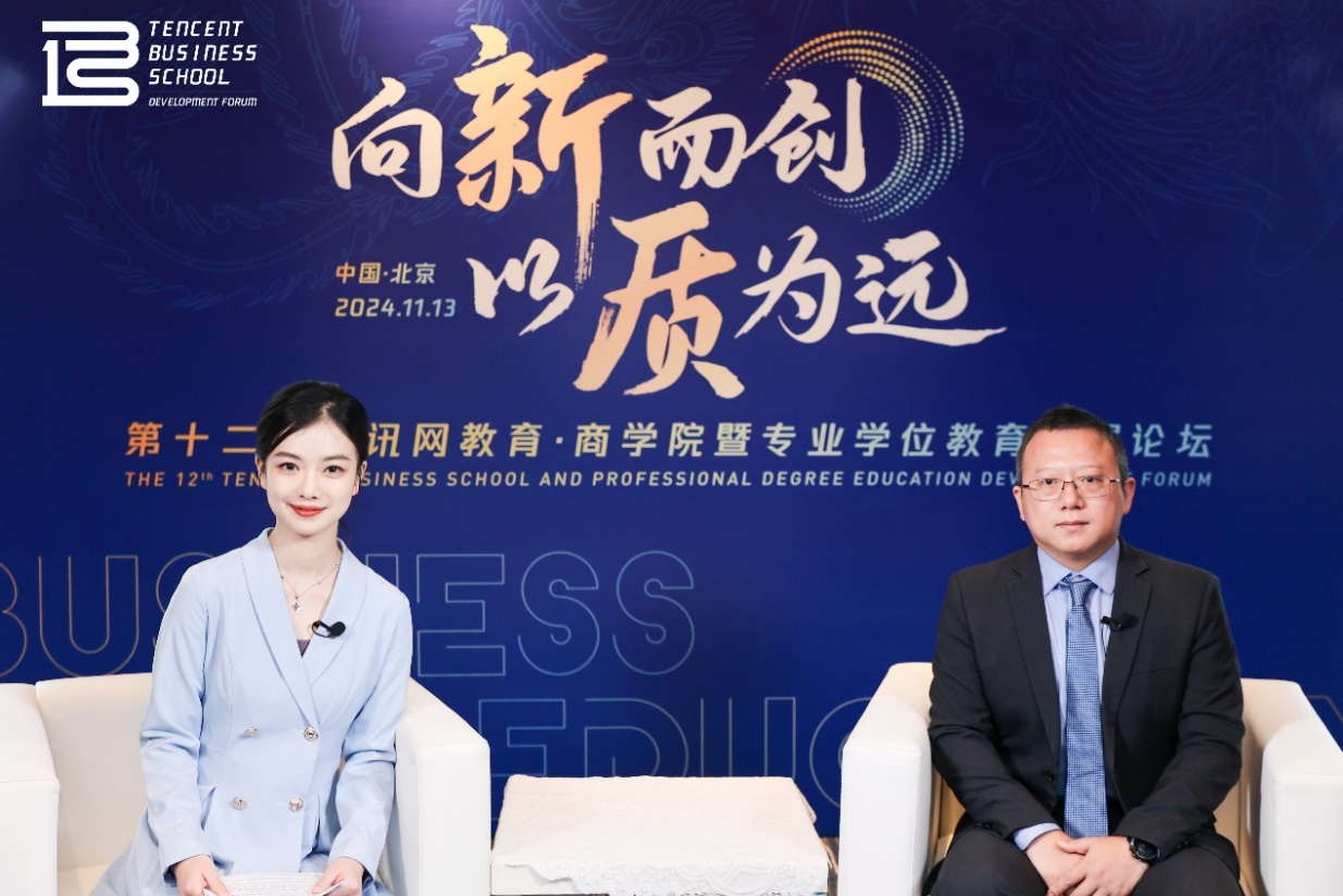 2024年11月13日,由腾讯新闻主办的第十二届腾讯网教育·商学院暨专业学位教育发展论坛于北京成功举办。来自全国100余所高校商学院院长、副院长、项目主任、行业专家、企业领袖以及三百余名院校代表出席会议。本届论坛以“向新而创·以质为远”为题,积极响应时代大潮,紧贴国家发展战略,以专业视角、前瞻思维,深度剖析商科教育在新时代的发展趋势,旨在进一步推动中国商科教育更好更快地向前发展,更为全球商科教育事业添砖加瓦、开拓道路。