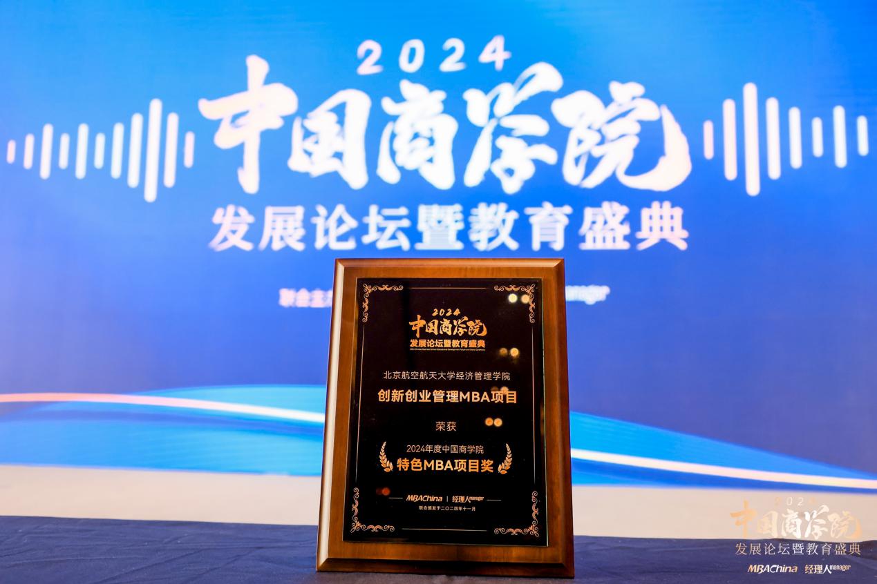 北航MBA创新创业管理方向荣获“2024年度中国商学院特色MBA项目奖”
