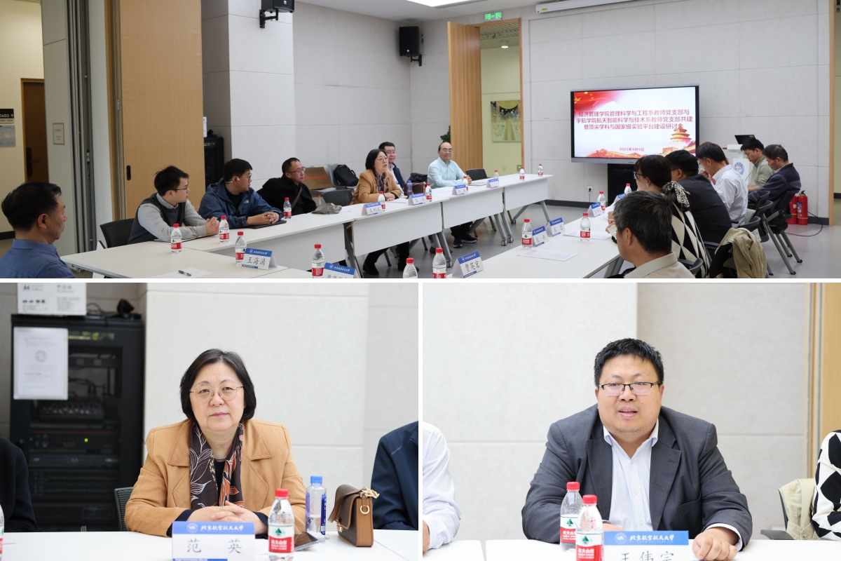 为深入贯彻落实党的二十大关于科技创新体系建设的战略部署,深化基层党建与学科发展融合机制,2025年4月9日下午2点30分,北航beat365亚洲版官网管理科学与工程系教师党支部与宇航学院航天智能科学与技术系教师党支部在沙河校区主楼D409举办党支部互联共建暨顶尖学科与国家级实验平台建设研讨会。beat365亚洲版官网院长范英,宇航学院书记徐亚军、院长王伟宗,管理科学与工程系教师党支部书记罗开平、航天智能科学与技术系教师党支部书记王可东等共20人参加。