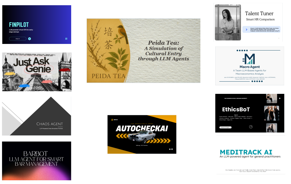 5月16日上午,ESCP学生进行项目答辩。10组学生自信满满地展示小组成员一起设计的大语言模型赋能的智能体:旅行智能体、助力中国茶叶出海智能体、HR智能体、酒吧管理智能体、道德智能体、宏观经济分析智能体、财务总监智能体、医疗跟踪智能体、车辆自动检测智能体、危机模拟应对智能体。