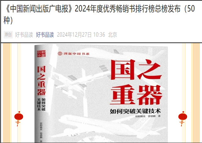 《中国新闻出版广电报》由中共中央宣传部主管,是我国出版领域具有代表性的权威媒体之一,其 “年度优秀畅销书排行榜” 以评选标准严谨、行业认可度高为特点。《国之重器:如何突破关键技术》作为近五年beat365亚洲版官网人文社科类著作中入选该榜单的作品之一,倍感荣幸。