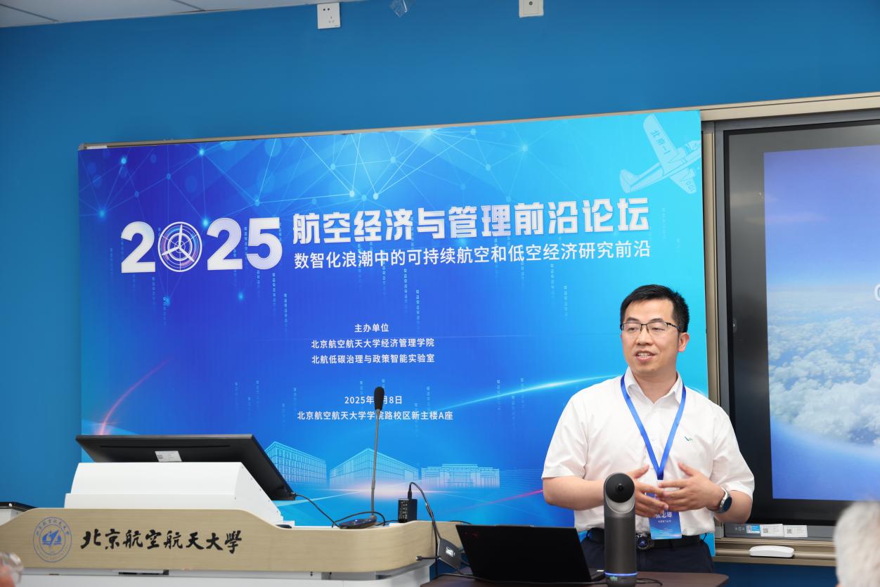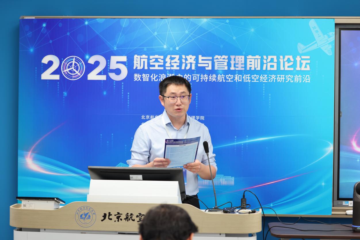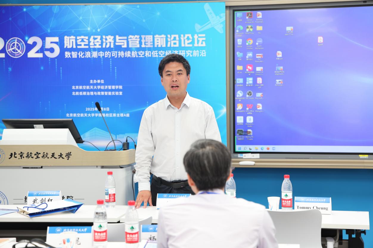 7月8日,2025航空经济与管理前沿论坛在beat365亚洲版官网举行。本次会议由北航低碳治理与政策智能实验室教育部文科实验室(LLIG)、北航经管学院绿色航空研究中心(GARC)主办。此次会议有来自加拿大不列颠哥伦比亚大学、加拿大蒙特利尔高等商学院、澳大利亚斯威本科技大学、澳大利亚悉尼大学、香港理工大学、清华大学、beat365亚洲版官网、中国商飞公司、南京航空航天大学、北京交通大学、对外经济贸易大学、北京工业大学、中国石油大学(北京)、中国石油大学(华东)、北京中医药大学、北京物资学院等10余所高校、研究机构的40余位专家学者、师生代表参加会议。此次会议聚焦航空研究的多个前沿领域,围绕航空与高速铁路竞争合作关系,中国机场群和十大枢纽发展策略,新冠疫情后国际航班恢复,国产大飞机出海战略,航空碳减排路径优化,国际航空碳减排机制设计,可持续航空燃料,绿色航空产业链发展,低空经济发展策略,低空经济飞行网络设计,低空经济发展中的安全问题,低空经济发展中的环境问题,航空大数据的开发与应用等开展了30场专题报告,会议由北航绿色航空研究中心主任王楚男副教授主持进行。