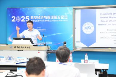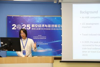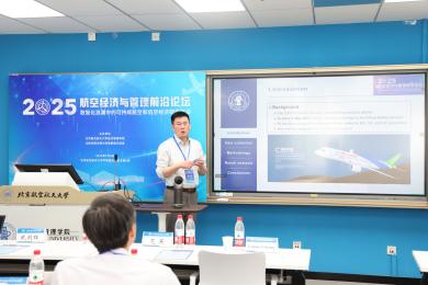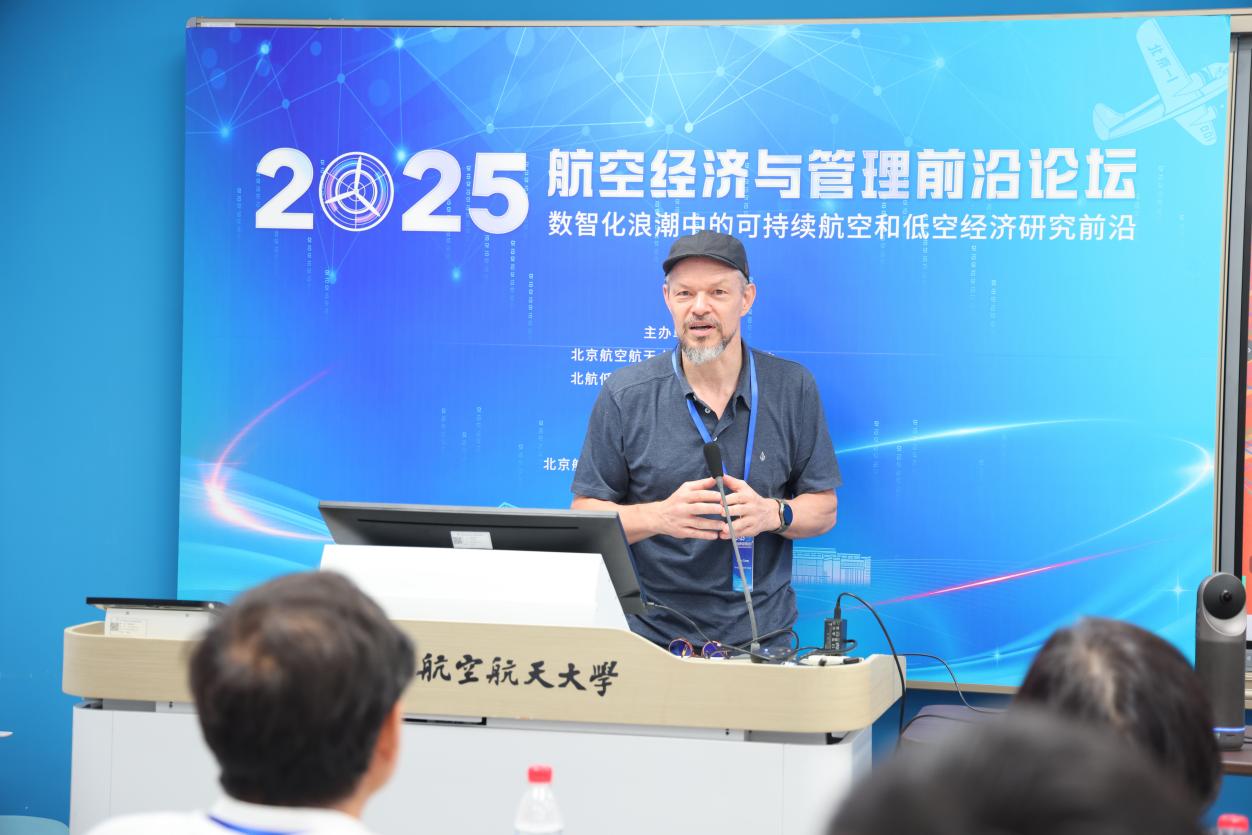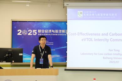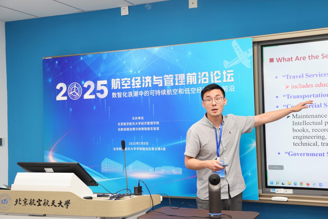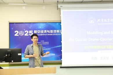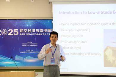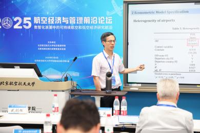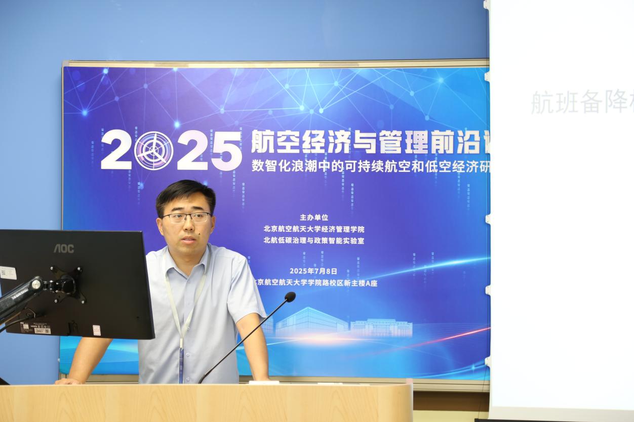 7月8日,2025航空经济与管理前沿论坛在beat365亚洲版官网举行。本次会议由北航低碳治理与政策智能实验室教育部文科实验室(LLIG)、北航经管学院绿色航空研究中心(GARC)主办。此次会议有来自加拿大不列颠哥伦比亚大学、加拿大蒙特利尔高等商学院、澳大利亚斯威本科技大学、澳大利亚悉尼大学、香港理工大学、清华大学、beat365亚洲版官网、中国商飞公司、南京航空航天大学、北京交通大学、对外经济贸易大学、北京工业大学、中国石油大学(北京)、中国石油大学(华东)、北京中医药大学、北京物资学院等10余所高校、研究机构的40余位专家学者、师生代表参加会议。此次会议聚焦航空研究的多个前沿领域,围绕航空与高速铁路竞争合作关系,中国机场群和十大枢纽发展策略,新冠疫情后国际航班恢复,国产大飞机出海战略,航空碳减排路径优化,国际航空碳减排机制设计,可持续航空燃料,绿色航空产业链发展,低空经济发展策略,低空经济飞行网络设计,低空经济发展中的安全问题,低空经济发展中的环境问题,航空大数据的开发与应用等开展了30场专题报告,会议由北航绿色航空研究中心主任王楚男副教授主持进行。