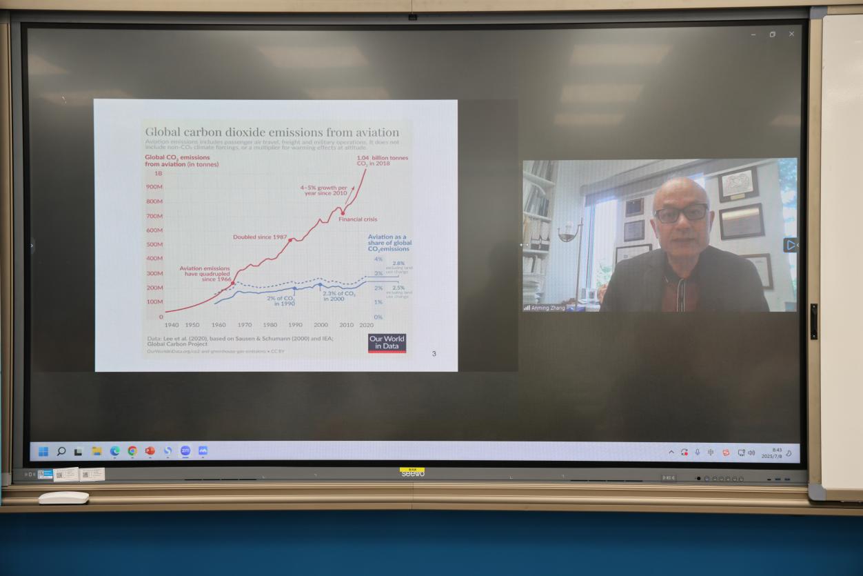 加拿大不列颠哥伦比亚大学尚德商学院、世界航空学会(ATRS)主席张安民讲席教授作关于碳税与可持续航空燃料补贴的经济与气候影响的线上主旨报告,并与与会学者充分交流讨论。