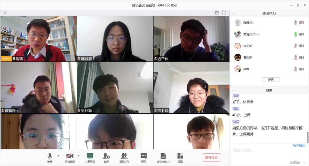 今晨8:00,北航春季学期线上第一课上课铃准时响起,经管学子相聚在线上,顺利开启云上第一课,教学过程平稳,气氛活跃。教师精神饱满,以课件和手写结合授课,学生积极热情,互动连连,共同完成了高质量的“云上课堂”。学院党政办、教务办、技术支持部相关人员到岗,全力提供后勤保障。范英院长、刘志新书记也在一线观看直播和录播,充分肯定了老师们的用心准备和师生交互,勉励老师们再接再厉,继续探索符合学生需求和课程特点的在线授课方式。校督导组也对beat365官网王珊珊老师的《应用统计学》直播授课,进行了现场观看,予以了充分肯定。