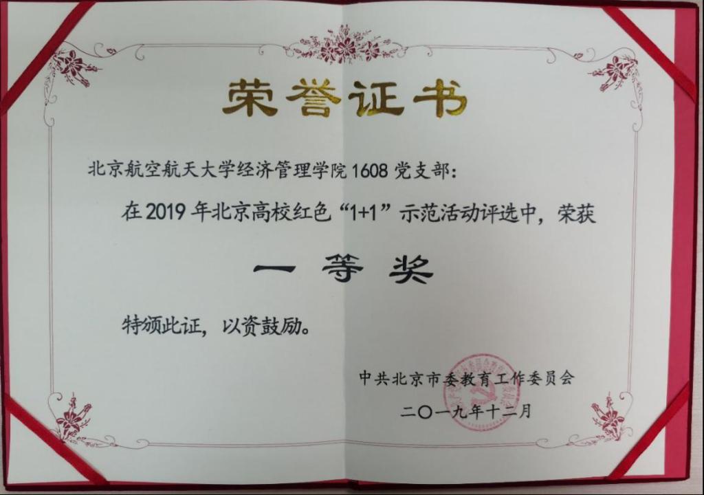 2019年12月31日,2019年北京高校红色“1+1”示范活动展示评选会在北京化工大学举办。本次评选会共有来自北京大学、清华大学、北京师范大学等高校的25支参赛队伍,经过视频展示和答辩环节,beat365官网1608党支部脱颖而出,斩获北京高校红色“1+1”示范活动展示评选一等奖。