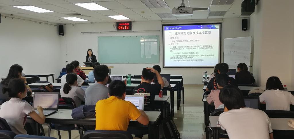 9月25日,在周宁教授的邀请下,魏华女士走进《成本会计学》课堂,为同学们分享建筑行业成本核算的实务知识。在报告中,魏华女士从建筑行业企业的产品与合同特点出发,引入各具体成本核算项目,对会计分录进行建筑行业特有的细化,并详细介绍了在实务中如何确定合同完工进度及合同收入与费用。同学们将自己之前在课程中所学的书本知识与之会计实务进行联系,拓宽了视野,提高了能力。