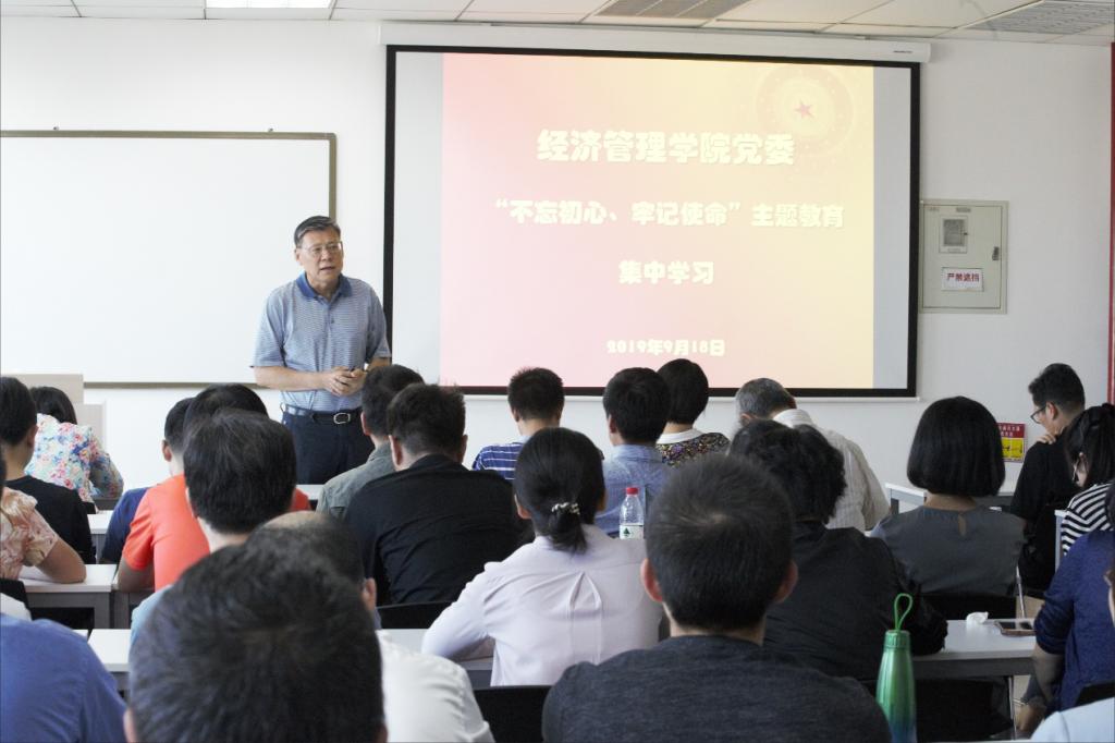 刘志新在讲话中指出,在全党开展“不忘初心、牢记使命”主题教育,是党的十九大作出的重要决定,是党中央统揽伟大斗争、伟大工程、伟大事业、伟大梦想作出的重大部署。今年是中华人民共和国成立70周年,在这个具有特殊历史意义的重要时点上开展“不忘初心、牢记使命”主题教育,具有更加重大而深远的历史意义和现实意义。开展主题教育,是用习近平新时代中国特色社会主义思想武装全党的迫切需要,是推进新时代党的建设的迫切需要,是保持党同人民群众血肉联系的迫切需要,是实现十九大目标任务的迫切需要;是学院深化综合改革、加快“双一流”建设、扎根中国大地建设具有国际先进水平的beat365亚洲版官网的强大动力;是加强学院党的政治建设、全面提升党建工作质量、以党风带校风促学风的重要契机。