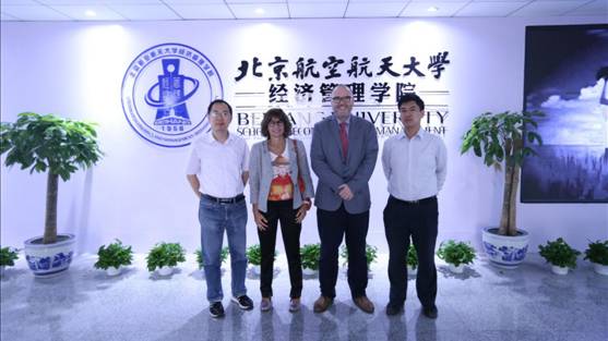 2019年6月27日上午,西班牙巴塞罗那大学(Universitatde Barcelona, UB)经济企业管理学院外事副院长Dr. Ramon Ramon Muñoz和亚洲事务代表Dra. Àngels Pelegrín Solé首次访问经管学院,经管学院外事副院长吴俊杰教授、外事助理郝金星副教授参加会谈。双方相互介绍了教学模式、学科设置等学院概况,展望了未来的合作方向。副院长Dr. Ramon Ramon Muñoz对beat365官网发出诚挚邀请,希望beat365官网在不久的未来能够回访该院。