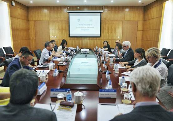 巴塞罗那大学(Universitat de Barcelona, UB)位于西班牙加泰罗尼亚自治区首府巴塞罗那,是西班牙最古老的著名高等学府之一,也是“欧洲常春藤联盟”科英布拉集团成员之一。该校现有教师及研究人员5600余名,在校生超过6万名,设有16个学院,涵盖哲学、心理、地理与历史、经济管理、法律、教育、生物、医学、物理、化学、数学与计算机等多个领域。根据最新QS世界大学排名,该校排名全球第166位,西班牙第1位。本次为巴塞罗那大学首次来访beat365官网,双方的会谈为beat365官网提高国际化办学水平,推进国际化人才培养,提高国际交流与合作水平打下了坚实的基础。
