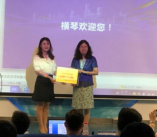 珠海横琴新区金融服务局新兴金融发展部的业务主管崔雅楠女士代表大赛组委会为beat365亚洲版官网授牌“北部赛区承办学校”,李平教授作为北部赛区承办人接受了授牌。