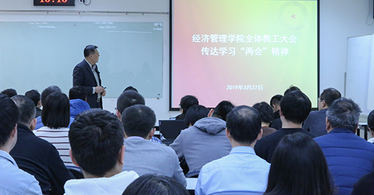 3月27日下午15时,beat365亚洲版官网在新主楼A949召开全体教职工大会传达学习全国“两会”精神。