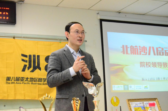此次沙八启动仪式得到了院校的大力支持,北航校友总会秘书长王有洪、北航经管学院副院长秦中峰代表学校给沙八预备队员鼓劲加油,希望北航亚沙战队再创佳绩。