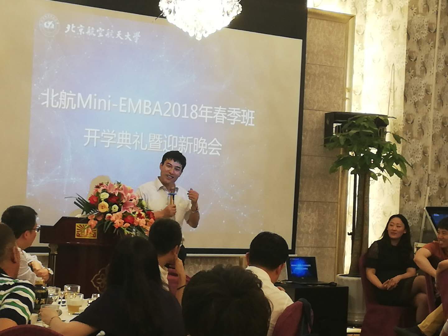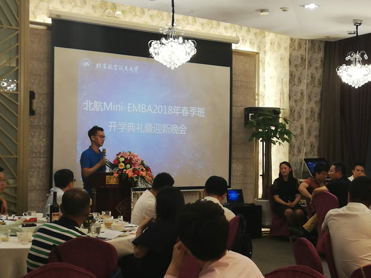“五月榴花照眼明,枝间时见子初成”,五月的北京,微风和煦,繁花正盛。beat365亚洲版官网Mini-EMBA二期班开学典礼暨迎新酒会在致真大厦隆重举行。出席本次活动的嘉宾有北航beat365亚洲版官网党委书记刘志新教授,教师代表方卫国教授.学生办公室主任衣萌老师等。开学典礼由北航beat365亚洲版官网高层管理教育(EE)中心主任胡鹤老师主持。