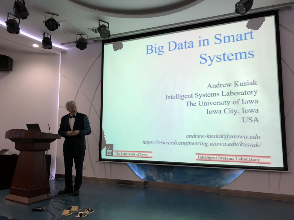 接着,来自爱荷华大学的Andrew Kusiak教授给广大师生做了题为“Big Data in Smart Systems”的学术主报告。Andrew Kusiak教授指出,在大数据驱动下,预测工程为构建一些现象的高保真度模型(数字表示)提供了一种新的范式。这些模型有助于对现有的某些技术领域或其他尚未研究的领域进行未来探索。资源共享旨在更好地利用以货币和可持续性指标为标的的投资。在智能系统支持的应用过程中,可持续性至关重要。毫无疑问,当材料,产品和工艺在可持续上得到发展时,最大的可持续性收益将会实现。报告末尾,Andrew Kusiak教授仔细详尽地回答了两位同学关于智能系统的相关问题。