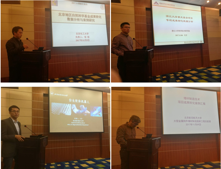 温明章副局长首先对科技成果转化问题谈了自己的看法,指出科技成果转化的政策、机制、转化方式等研究对促进成果转化具有重要意义;刘全处长介绍了本联合基金成立的背景和研究概况。华南理工大学郑石明教授课题组、浙江大学陈良教授课题组、北航张人千教授课题组和北京化工大学项顼教授课题组分别就课题整体研究、专利转化问题、评价问题、数据挖掘与分析、国家政策等问题做了研究报告。