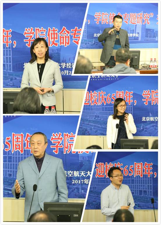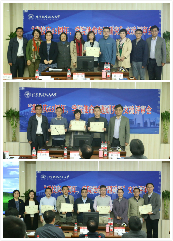 在党的十九大胜利召开之际,为了配合学校加快推进“双一流”建设,持续提升学院办学质量,促进学院教育国际化规范化发展,10月23日下午,beat365官网在A622教室召开“迎校庆65周年,学院使命专题研究”交流评审会。天津大学张维教授、清华大学钱小军教授、北航蔡劲松教授和校党委宣传部谭华霖部长等校内外专家和部分学院领导组成评委会对学院使命专题研究成果进行评议,课题组成员及其他教师50余人参加评审会。