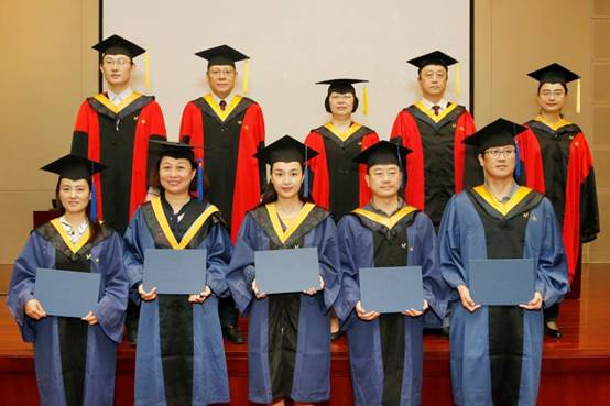在随后举行的学位授予仪式上,与会领导和学院学位评定委员会委员为毕业生们一一援苏正冠、颁授学位证书并合影留念。最后,毕业生们面带微笑、满怀激动的心情进行了合影留念。