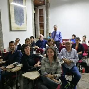 在里约热内卢联邦大学举办讲座,图中前左二学者是巴西科学技术研究院公共政策与战略研究所副主任Celia Castro教授,该机构与清华大学公共管理学院合作组建了中国-巴西研究中心开展科研与培训合作。