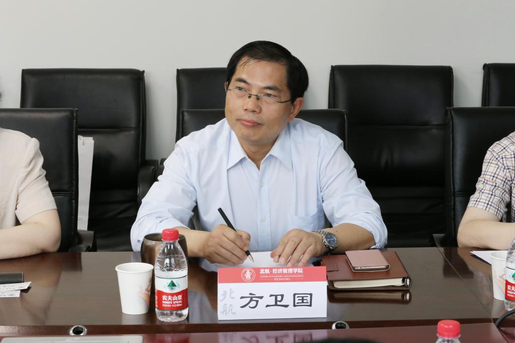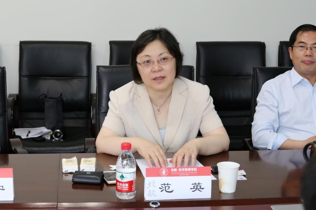 北航经管学院的院长范英、副院长方卫国、周宁教授、工硕中心主任王玉灵、营销系支部书记李晨溪、实验中心主任韩小汀出席了调研座谈会。