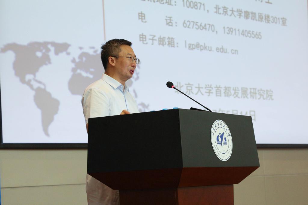 北京大学政府管理学院李国平教授首先做了题为“世界级城市群视角下的大首都地区联动发展研究”的主旨演讲。就世界级城市群视角下的京津冀地区联动发展问题,李国平教授围绕京津冀区域总体功能四个定位,以有序疏解北京非首都功能,解决北京“大城市病”为基本出发点,对比分析了世界级城市群的特点及发展趋势,提出优化京津冀区域“一环两核三轴多中心网络化”城市空间结构布局的构想,强调了加强疏散过程中的管控工作的重要性。