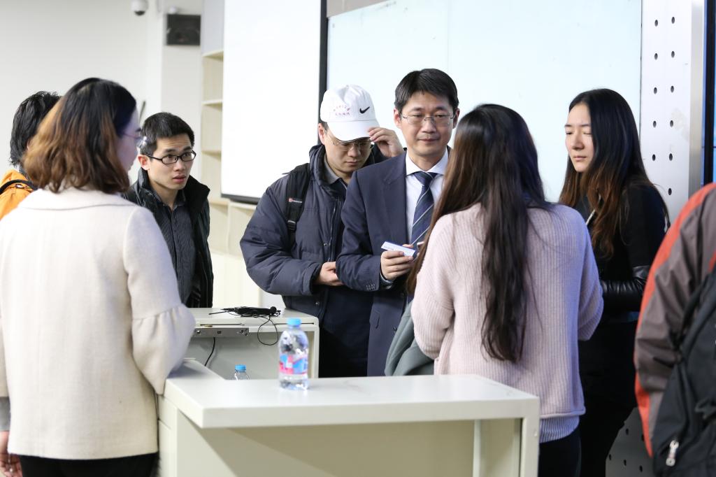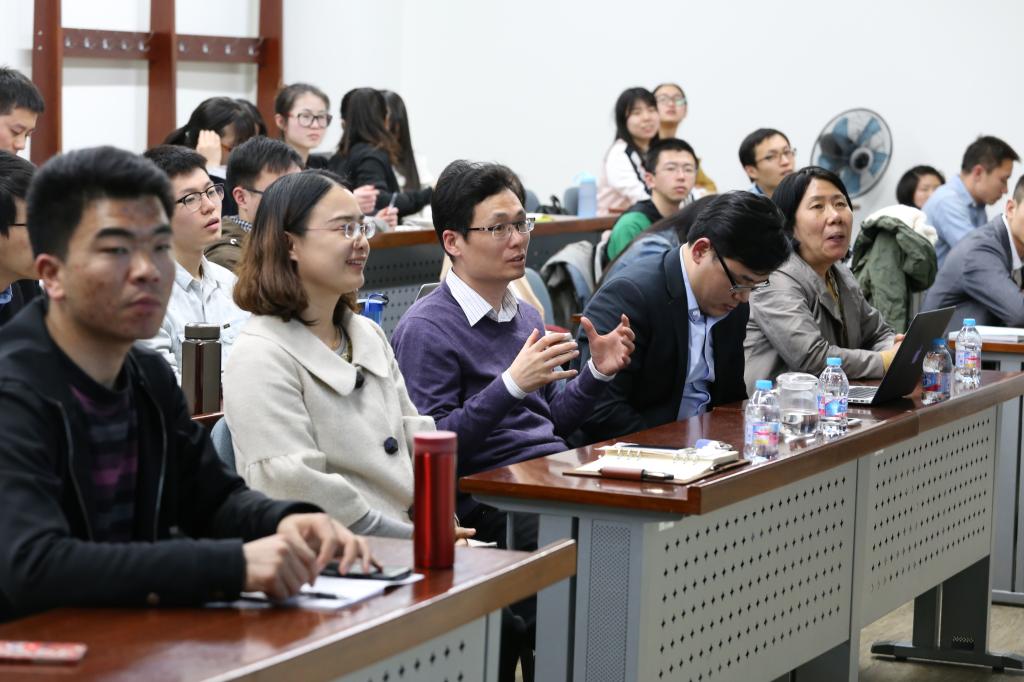 最后,张总就师生们关心的封闭式基金与开放式基金的发展趋势,量化投资的未来前景,量化投资数据库的构建等问题进行了深入的交流。经管学院金融系以数理金融分析见长,学生们对量化投资的兴趣非常浓厚,大家都期待下一步有更深入的交流和合作。