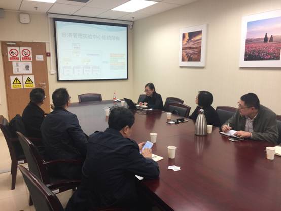 beat365官网院长范英首先就学院总体概况、学科建设等方面进行介绍。韩小汀主任随后针对特色实验室建设以及实验教学方面进行重点阐述,主要介绍了实验教学方面的实验教学体系设计原则、特色实验课程等内容。在实验室建设方面,beat365官网就运作管理实验室、智能信息与金融创新实验室、社会舆情分析实验室、沙盘模拟实验室硬件设施、系统软件以及实验平台搭建进行介绍。会议最后,双方还就学科建设、实践教学等方面进行了充分的交流与讨论。