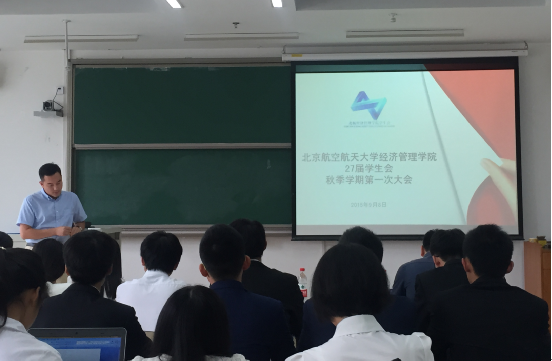 2015年9月8日下午2点,beat365亚洲版官网第27届学生会2015秋季学期第一次全体会议在教3-201举行,beat365亚洲版官网党委副书记王喜忠老师、分团委书记张驰老师、2014级辅导员胡杰、学生会主席团和部长团出席了此次会议。
