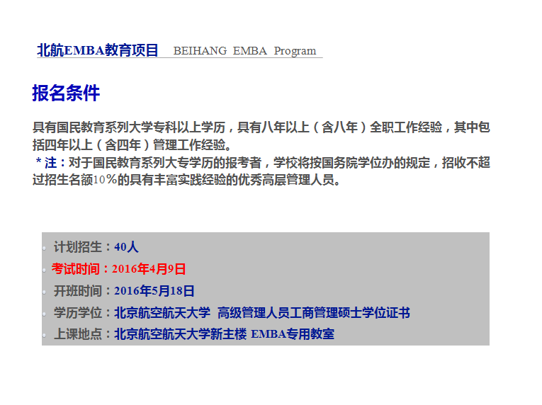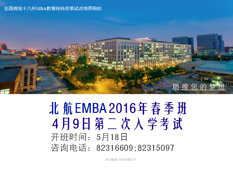 北航EMBA2016年春季班将于4月9日进行第二次入学考试